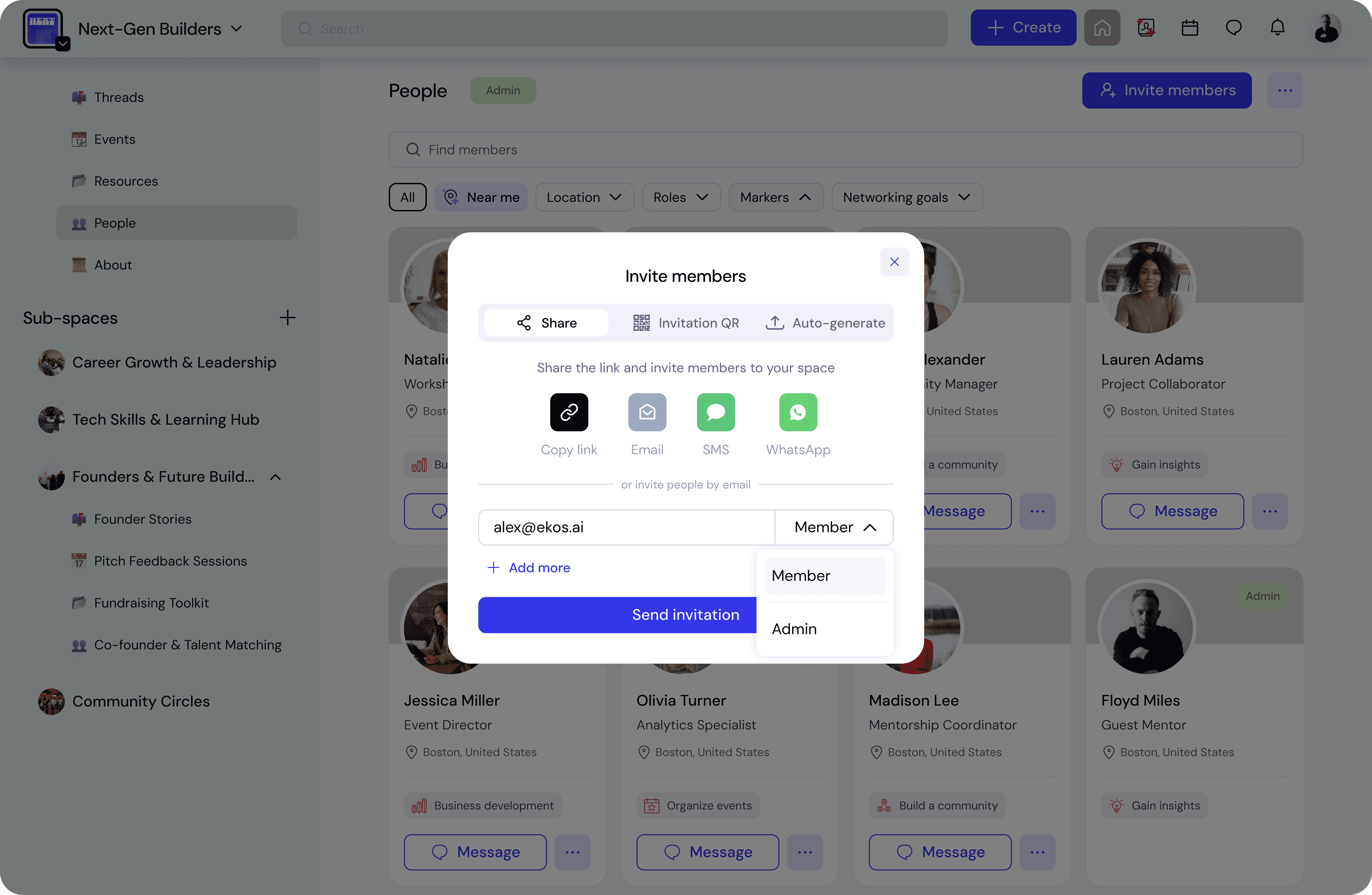 EKOS allows you to invite members in three different ways depending on how you want people to join: